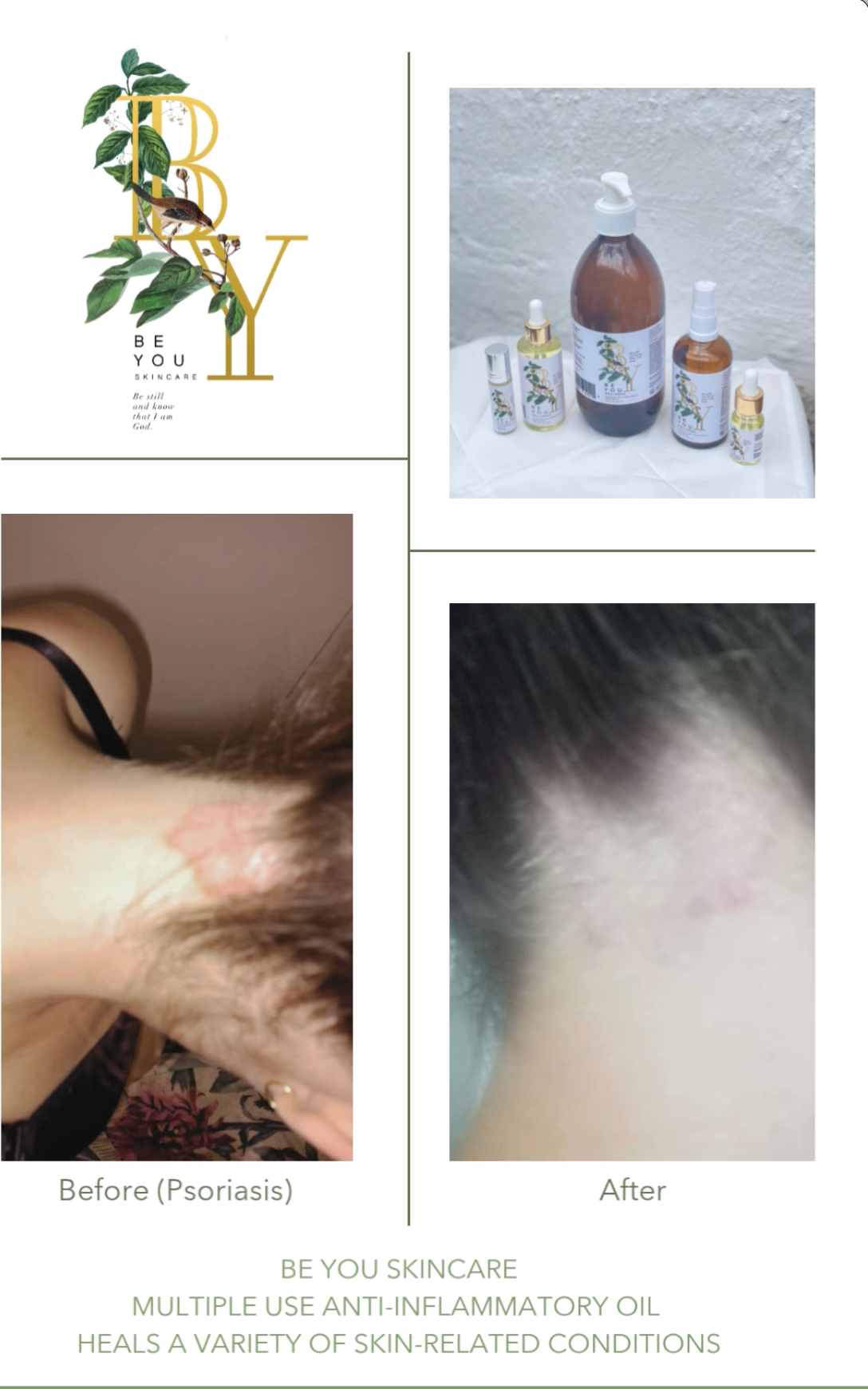 Michelle introduced me to the Be You oil when she first started experimenting with it. I have very dry skin so I had to moisturize my skin sometimes 3 x a day. I started using the oil all over my body and my face and since then I moisturize only once a day. I feel that there is a special anointing to the oils which is so much bigger than just using a beauty product!