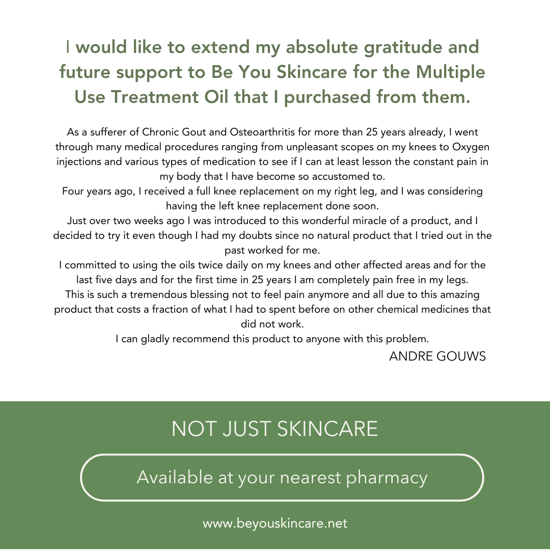 This incredible journey of healing was made possible with the Be You Skincare Ultra Nourishing Treatment oil.